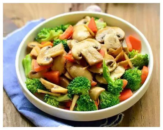 口蘑200g、西兰花80g、胡萝卜3/1个、姜3g、蒜2瓣、生抽1茶匙、盐少许