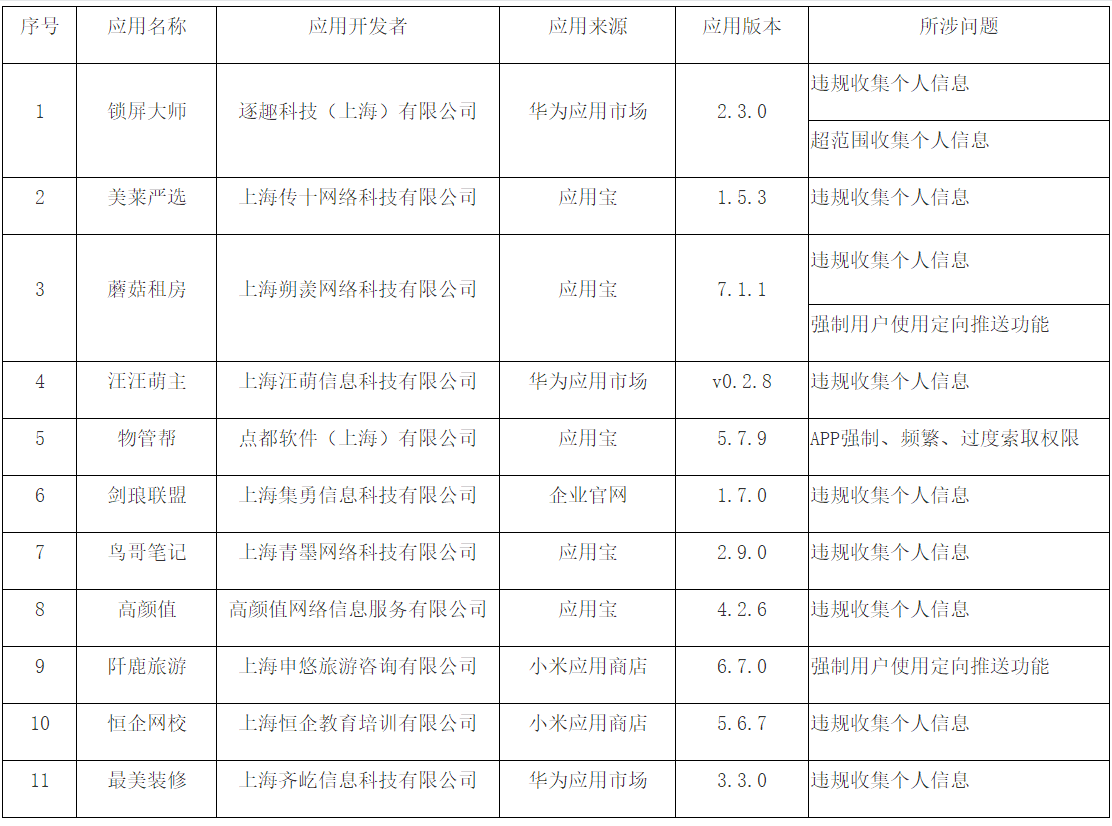 在工业和信息化部的统一领导下,按照《关于开展纵深推进App侵害用户权益专项整治行动的通知》(工信部信管〔2020〕164号)工作部署,上海市通信管理局将App个人信息保护专项整治作为全年的重点工作,全面深化落实App侵害用户权益的专项整治行动。2021年6月8日,上海市通信管理局向社会公示了75款存在侵害用户权益行为的App。在规定的二次整改期限内,经核查复检,尚有11款App未按照要求落实整改。