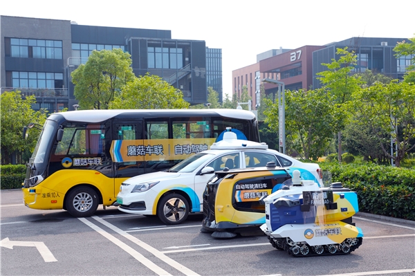 蘑菇车联自动驾驶公交车、自动驾驶出租车、自动驾驶清扫车、自动驾驶巡逻车