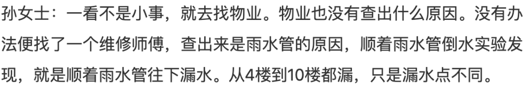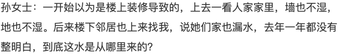 孙女士这才了解到,原来漏水的不只自己一家!这事让她很奇怪,水究竟是从哪来的呢?