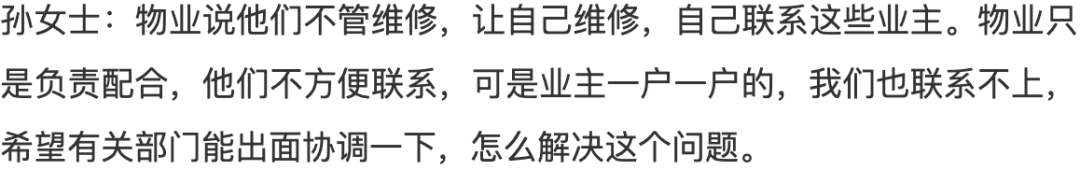 第二天,行动员联系了孙女士,孙女士表示并没有工作人员到家里查看,无奈之下,自己电话联系了街道工作人员,工作人员表示,他们会委托物业和业主共同协商解决。