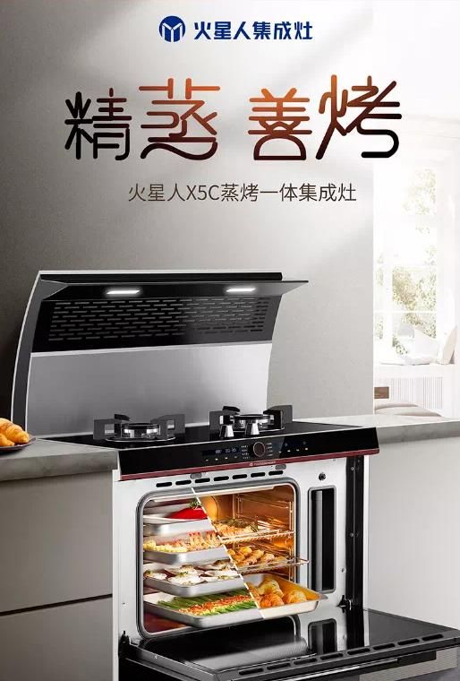 火星人X5BC蒸烤一体集成灶下方还有60L大容量蒸烤箱,一次就能做出一桌菜品,满足好友聚餐的需求;上煎炒下蒸烤,多线程操作,让美味加速诞生,大大减小大厨烹饪压力;快蒸嫩烤八大模式,让小白都能轻松解锁八大菜系正宗美食。