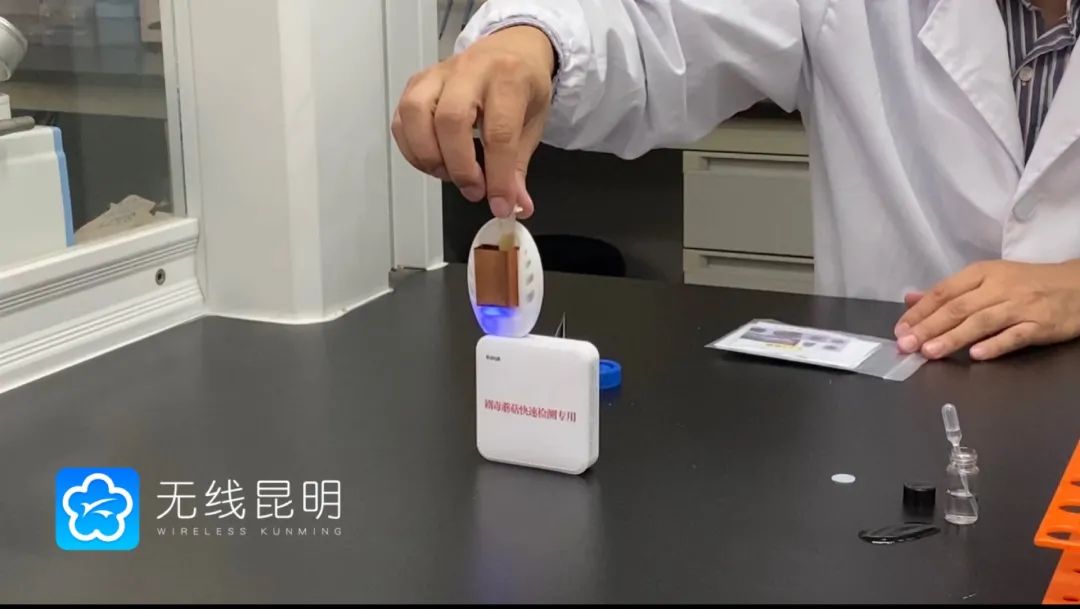 户外快检不同于专业实验室检测,既需要检测结果快速、直观,也要求检测材料轻巧便携,只有如此才能满足大众化普及应用的需求。于是,科研团队针对材料显色灵敏度、恒温、便携三个要素,开展了反复实验。罗宏指着像充电宝一样的加热器说:“它也是我们团队专门设计制作的,改版了三次,形成了一个可以装入纸盒、随身携带的小型加热设备。”