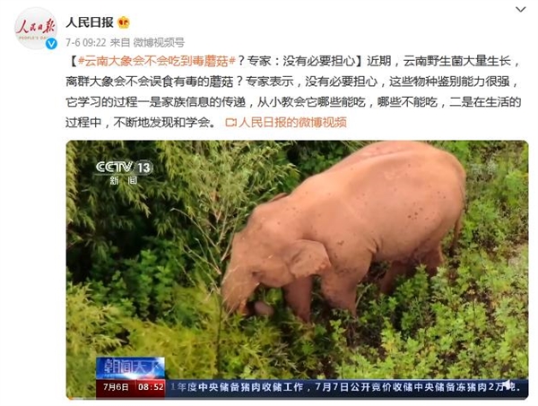 近期,云南野生菌大量生长,离群大象会不会误食有毒的蘑菇?