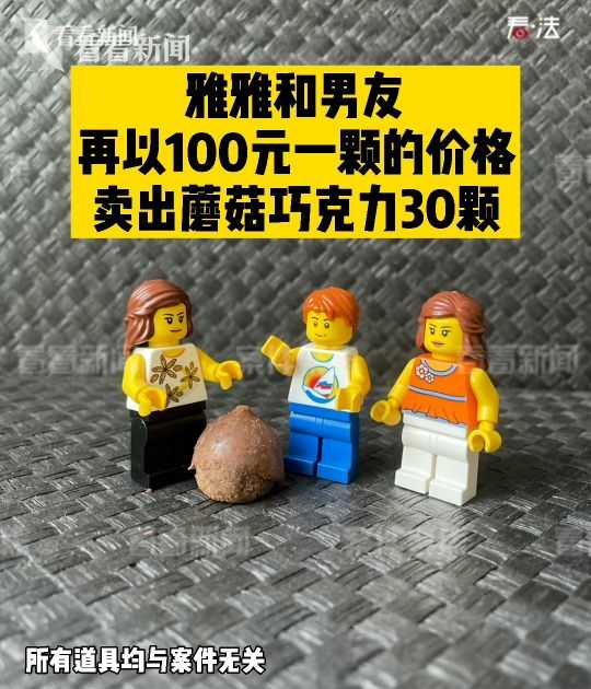 之后不久智哥便给雅雅看了一种巧克力,这巧克力小小一颗,模样、气味都和普通市售的无异,但智哥告诉雅雅:“这颗巧克力可以让你如登仙境。”雅雅受不了诱惑,便吃下了巧克力,之后她便觉得天旋地转,眼前直冒金星,大脑也转不动了,一时间甚至不知道自己在做什么,随后很快便睡着了。等醒来后她问男友这是什么巧克力,智哥称这是他从一名新疆的朋友米克(由其所在地警方抓获并由当地检察机关立案处理)那里好不容易弄来的“蘑菇巧克力”,里面含有可以令人致幻的毒性蘑菇成分。智哥还告诉雅雅:“偶尔吃一次并不要紧,甚至还能够助兴。”雅雅便问这巧克力多少钱,智哥说:“我从朋友这里拿,价格比外面优惠,只要75元一颗,放在外面这巧克力最低也要100一颗。”雅雅对这个价格感到震惊,但很快也不放在心上,投入了自己在酒吧的演出工作。
