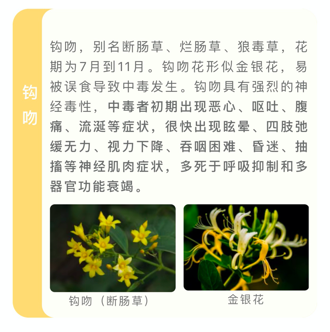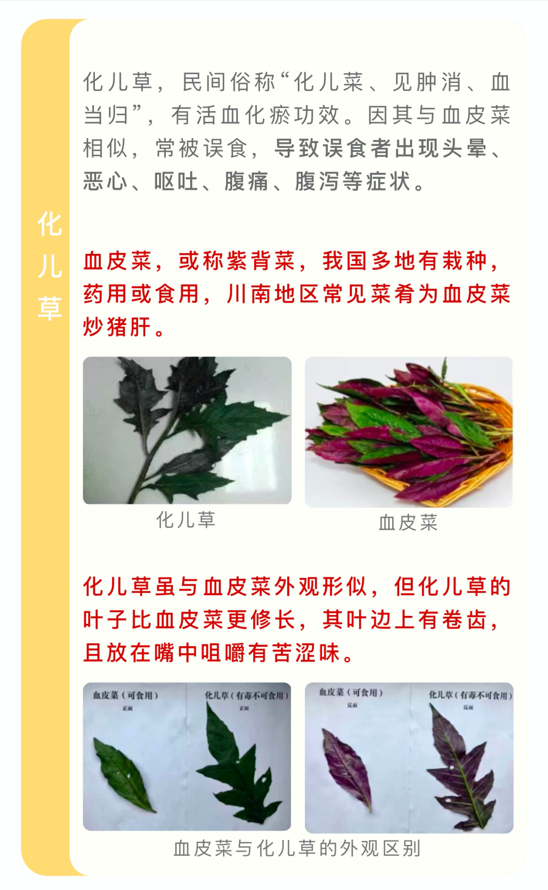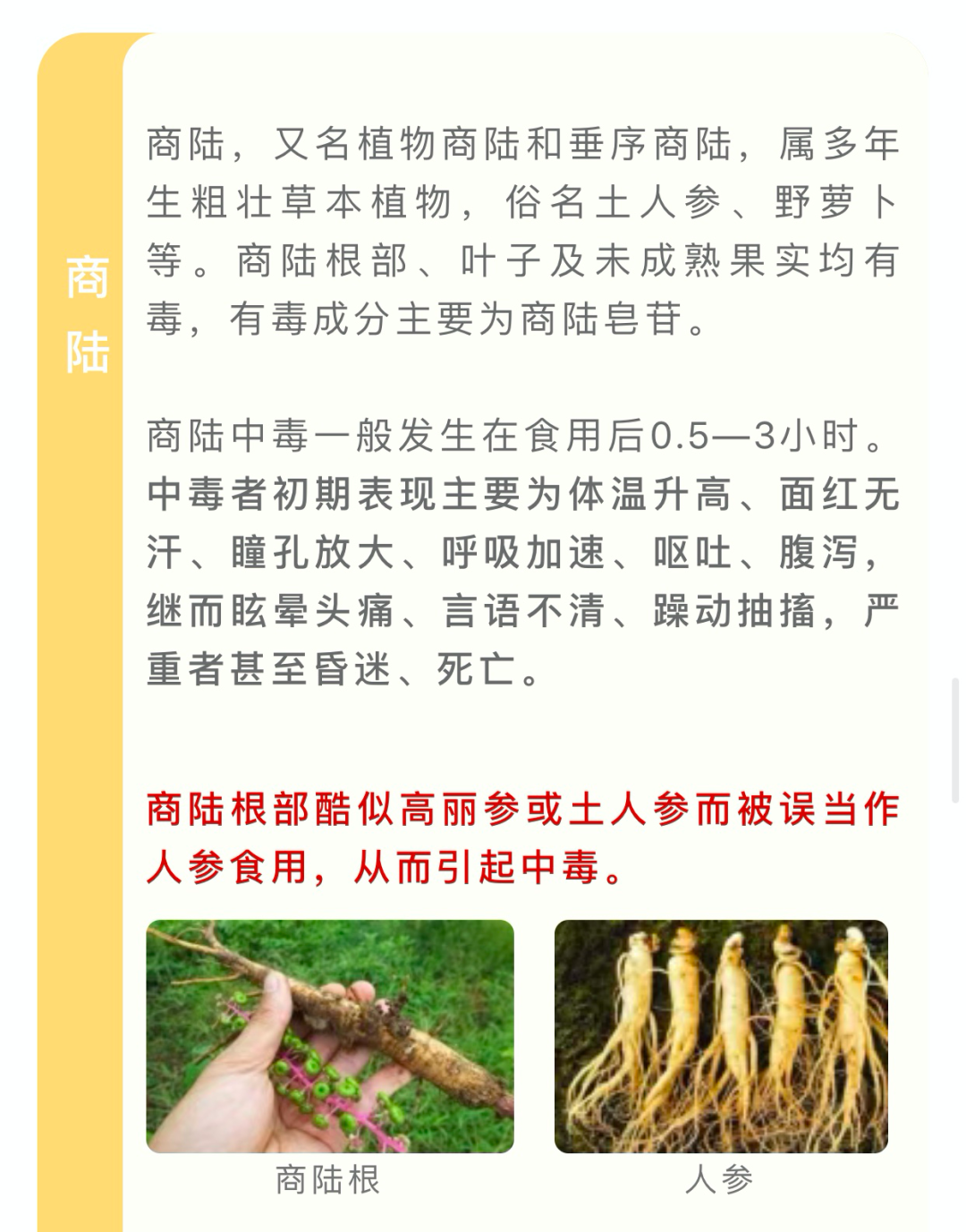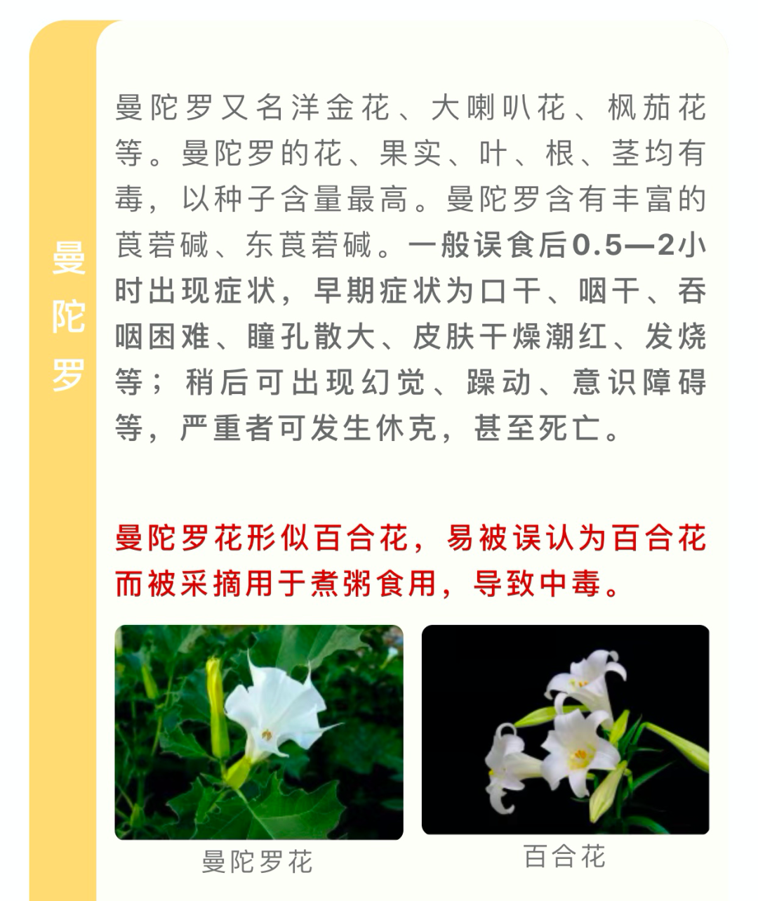 有些有毒植物与我们经常食用的植物外观相似,易被误食导致中毒。