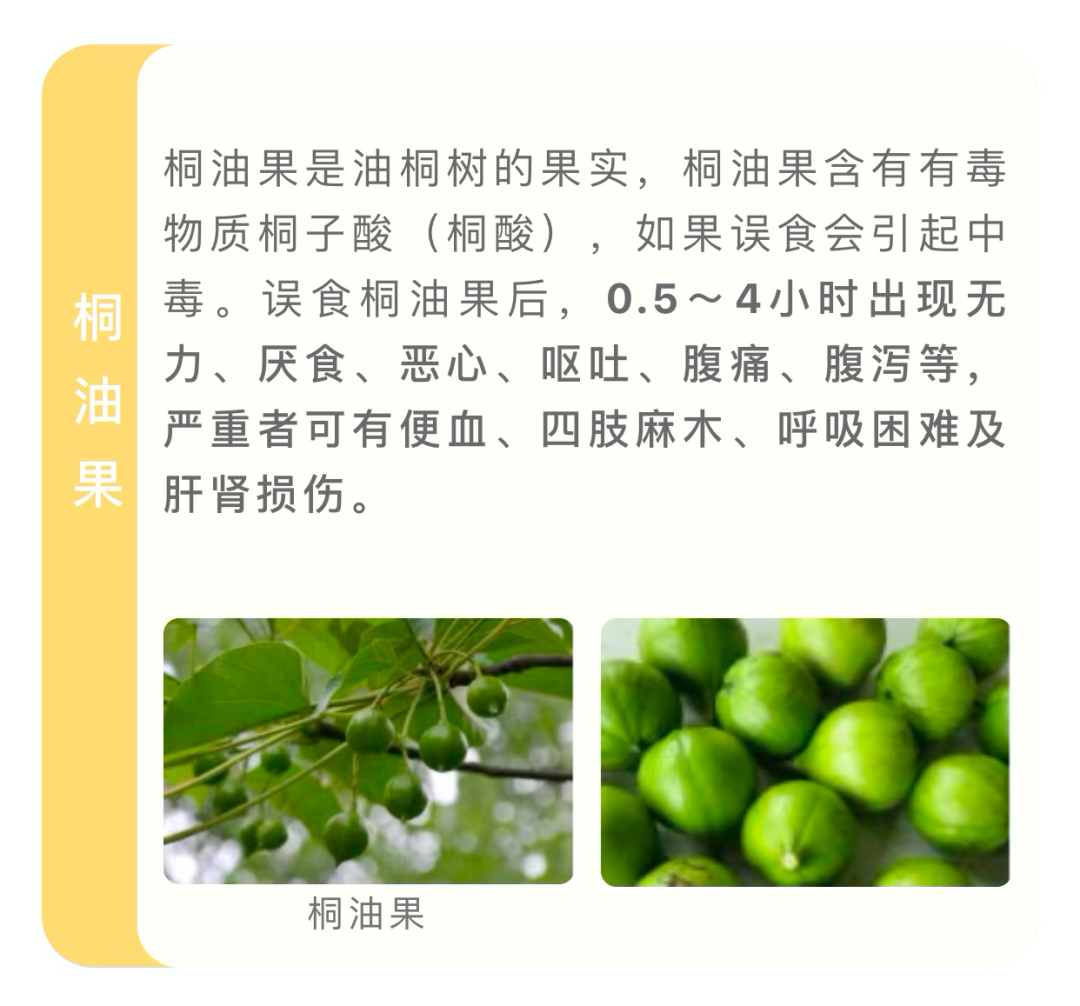夏季是各种植物结果的季节。四川省夏季导致食物中毒的野果主要有马桑果、桐油果、蓖麻子。中毒主要是由农村学生上下学途中采食野果,或孩童野外玩耍时采食野果导致。